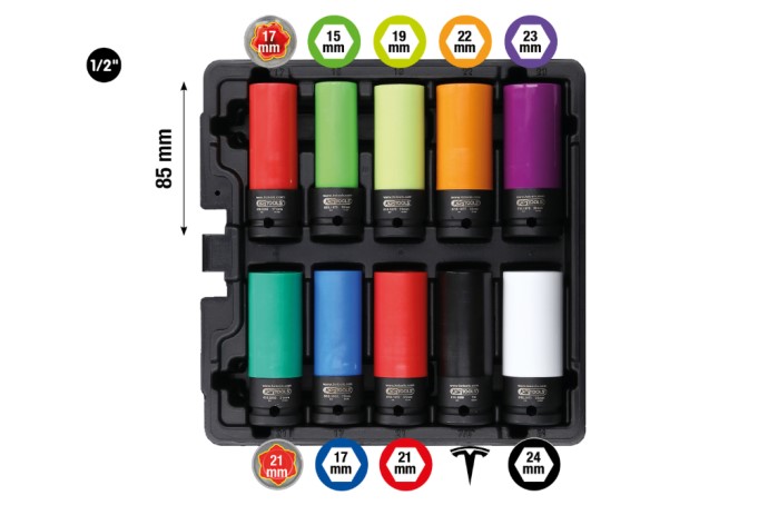 Douil-tournevis 1/2' long tx t55 SX.55LA 57.80 HT | Douil-tournevis 1/2' long tx t70 SX.70LA 72.90 HT | jeu de douilles à choc roues KS Tools KST-515.0890 79.00 HT | Douille taille 20.5 + 21.5 mm Ford C4785-21 26.00 HT |